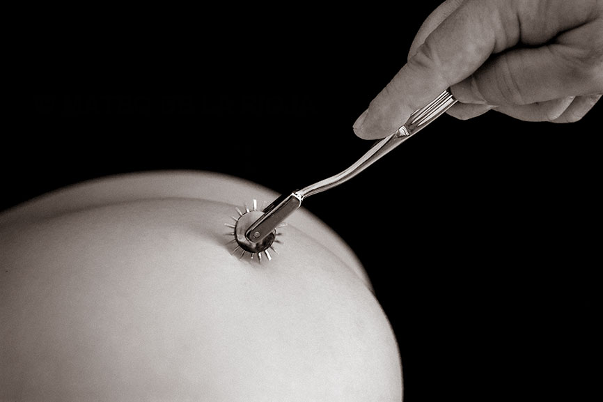 Hẳn bạn cũng biết, cù lét thật ra chính là một hình thức tra tấn và khi được sử dụng trong BDSM tất nhiên nó cũng trở thành một hành động đầy tính kích thích và an toàn cho người mới bắt đầu. Bạn có rất nhiều cách để cù lét như dùng tay, một sợ lông vũ hoặc có thể dùng một dụng cụ chuyên dùng "nặng đô" hơn có tên là Wartenberg Pinwheel. Wartenberg Pinwheel là một dụng cụ trông như một chiếc dao cắt bánh pizza tuy nhiên nó có các gai nhỏ ở xung quanh bánh xe. Khi sử dụng, bạn sẽ lăn Wartenberg Pinwheel trên những vùng da nhạy cảm của người yêu bạn như vùng đầu vú, vùng kín, eo, hoặc sau đùi. Tuy nhiên dụng cụ này có thể gây bị thương cho đối tác nếu bạn dùng lực quá mạnh đấy.
