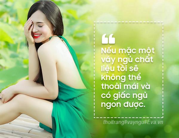 Hơn nữa, mình rất yêu bản thân nên luôn muốn mình lúc nào cũng xinh đẹp, dù là lúc đi ngủ. Do vậy mình ưu tiên những trang phục đáp ứng được yêu cầu đẹp, thướt tha, mềm mại, che được khuyết điểm của cơ thể. Sau đó mới đến yêu cầu về sự thoải mái. Thường thì những đồ vải lụa hoặc satin sẽ đáp ứng được những yêu cầu này".