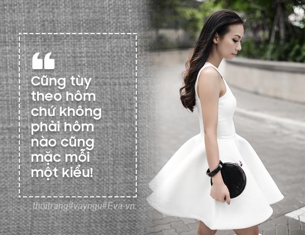 Mình không thích sự gò bò với những bộ đồ mình cảm thấy thiếu tự nhiên. Mình thích phóng khoáng với váy lụa, quần lụa.Theo Hạnh, sự quyến rũ của người phụ nữ không phải ở bộ cánh mỏng manh, ôm sát lấy cơ thể mà chính là sự tự tin, thoải mái trên giường. Dù mặc đồ gì, chị em cũng cần thoải mái sẽ hấp dẫn và xinh đẹp hơn trong mắt chồng".
